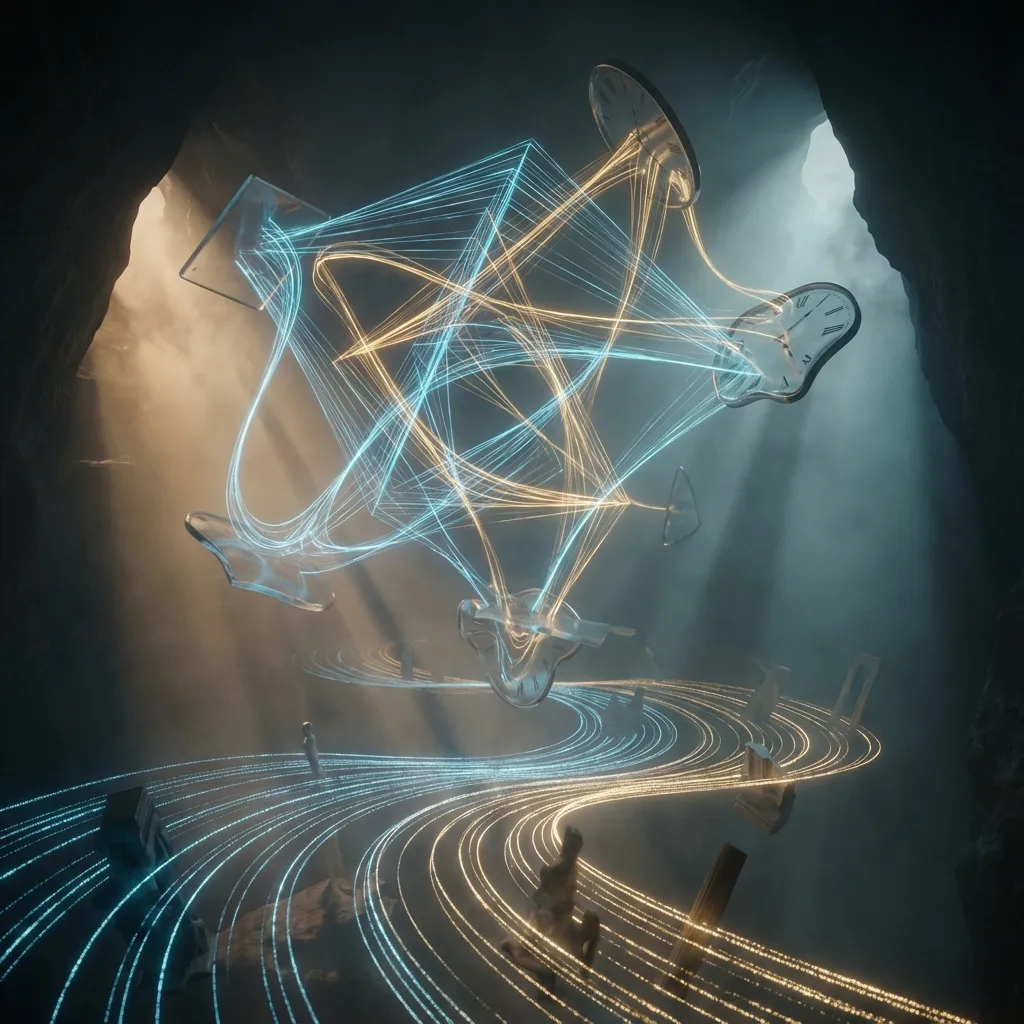 MeaChatcould exert force across time using gravity. Moving the books, the watch hand, the dust.